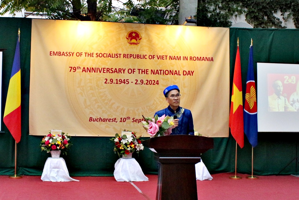 Tối 10/9, tại Trụ sở Đại sứ quán, trong một không gian thuần Việt, Đại sứ quán Việt Nam tại Romania đã long trọng tổ chức Lễ kỷ niệm 79 năm Quốc khánh 2/9 (2/9/1945 – 2/9/2024).