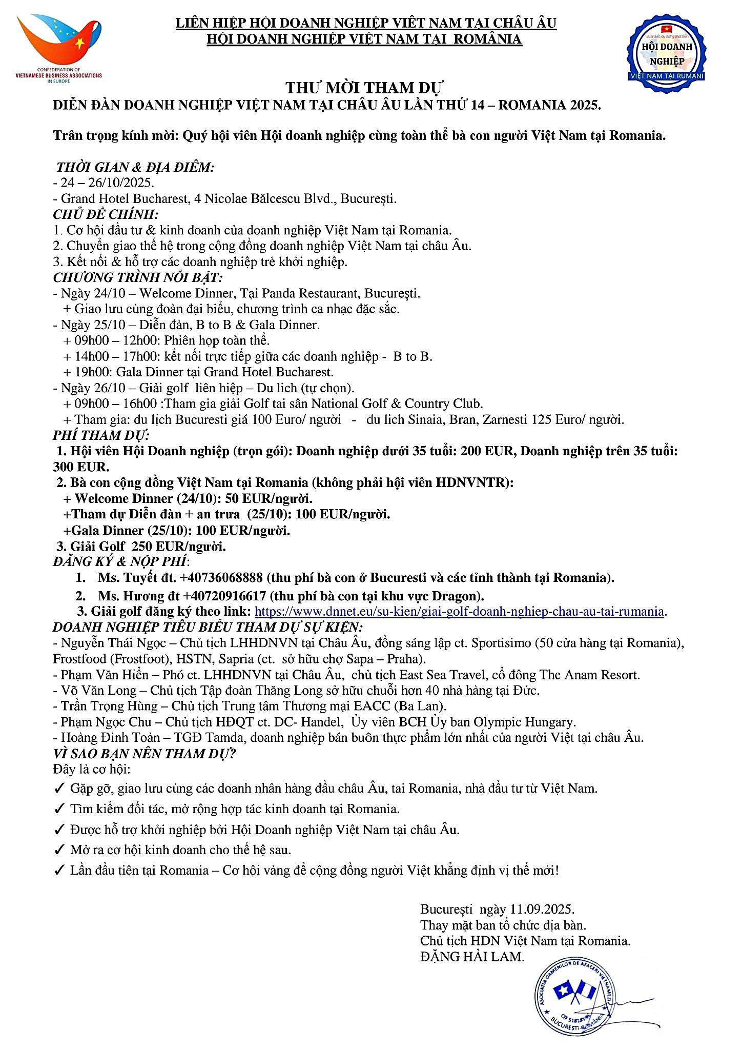 • Hội Doanh nghiệp Việt Nam tại Romania