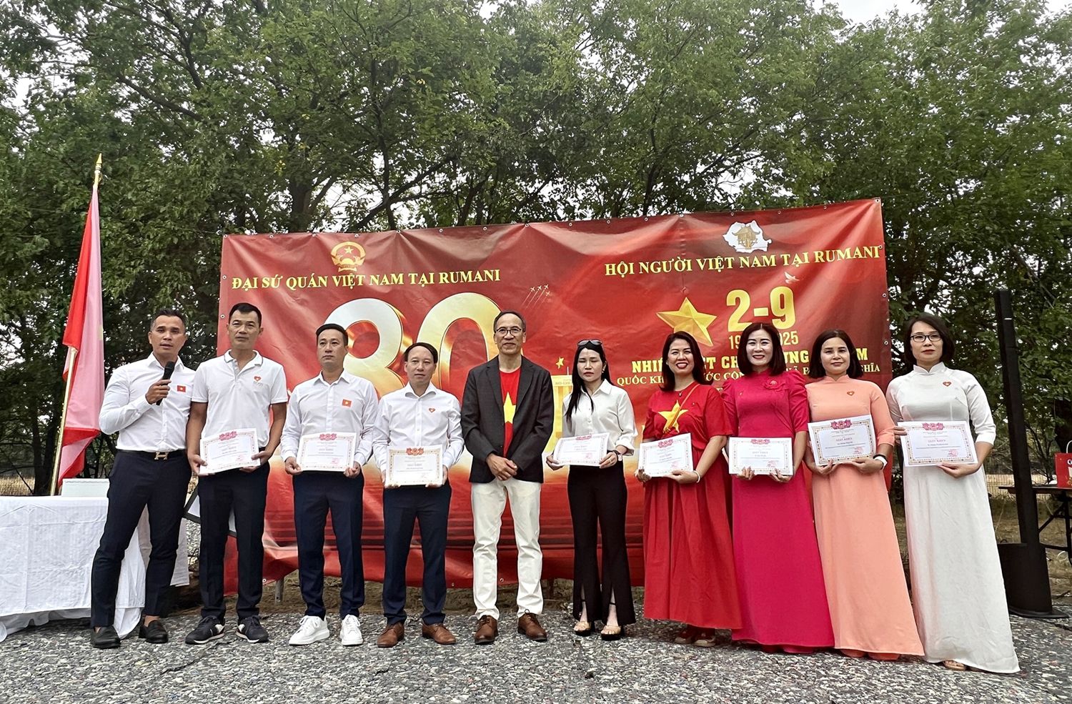 Đại sứ quán cũng đã tặng Giấy khen cho một số cá nhân kiều bào có những đóng góp tích cực cho công tác cộng đồng trong thời gian qua, đặc biệt những cá nhân có thành tích xuất sắc trong các hoạt động hướng tới kỷ niệm 80 năm Quốc khánh 2/9, 75 năm thiết lập quan hệ ngoại giao Việt Nam – Romania.