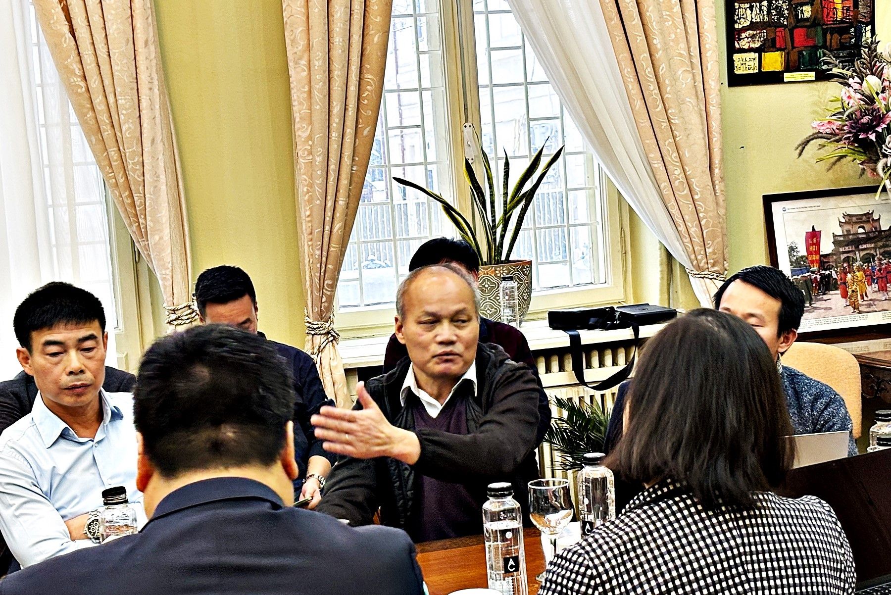 Ông Nguyễn Văn Tới, ông Nguyễn Ngọc Minh nói về những khó khăn, thách thức trong công tác chuẩn bị cho việc tổ chức Diễn Đàn Doanh nghiệp Việt kiều châu Âu tại Bucaret sắp tới.