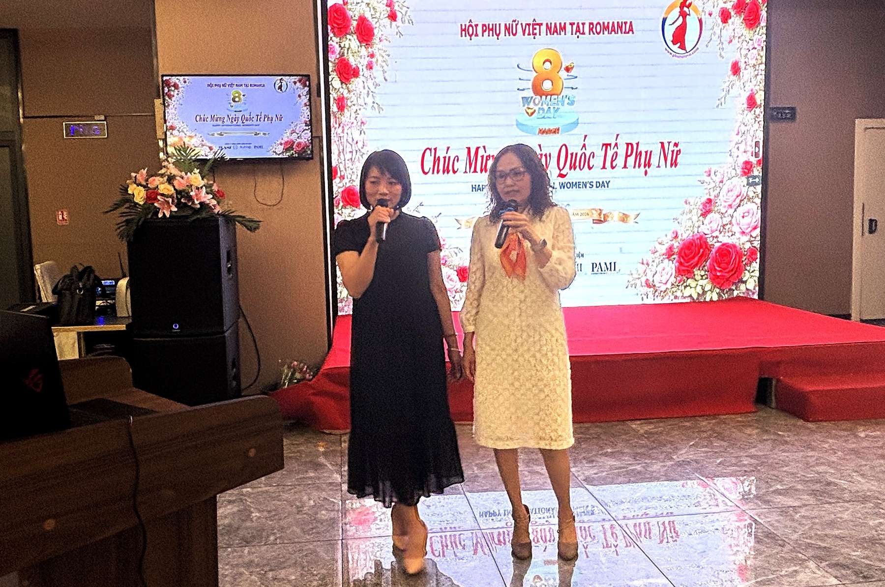 Phát biểu tại buổi họp mặt, bà Nguyễn Thanh Nga, Phó Chủ tịch Hội Phụ nữ Việt Nam tại Romania nêu ý nghĩa lịch sử của Ngày Quốc tế Phụ nữ 8/3, tổng kết các hoat động của Hội năm qua, ca ngợi những đóng góp tích cực của chị em trong nhiều lĩnh vực của đời sống. Chị em không chỉ là những người giữ gìn hạnh phúc gia đình, chăm lo nuôi dạy con cái mà còn là lực lượng tích cực trong lao động, kinh doanh và các hoạt động cộng đồng. Dù sinh sống xa quê hương, chị em vẫn luôn giữ gìn bản sắc văn hóa dân tộc, đoàn kết, hỗ trợ lẫn nhau và góp phần xây dựng cộng đồng người Việt ngày càng vững mạnh, hội nhập tốt với xã hội sở tại.