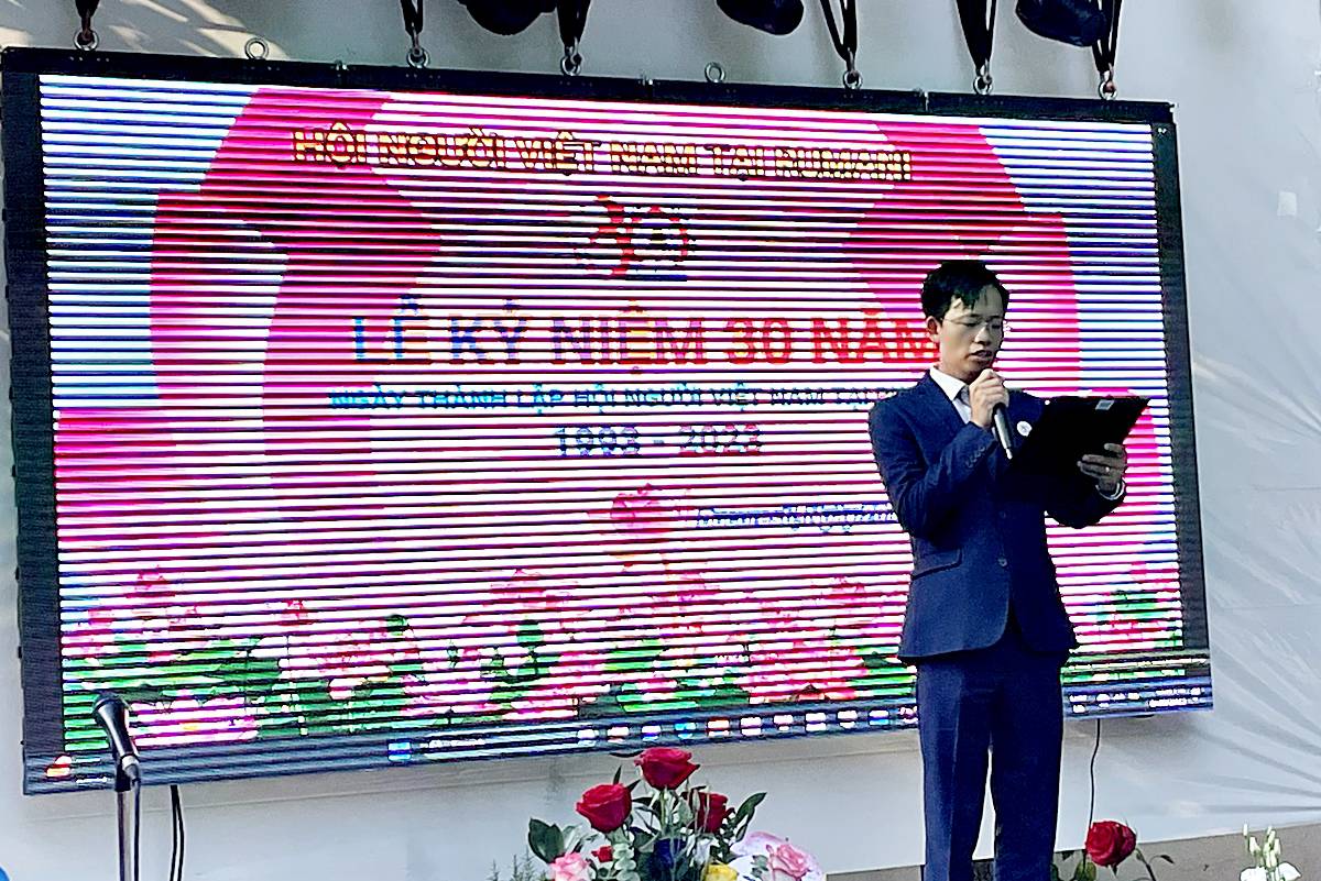Ông Nguyễn Hữu Tuyến, Bí thư Thứ Hai phụ trách lãnh sự đọc thư của Bộ Ngoại giao chúc mừng Lễ kỷ niệm và thư của Nguyên Đại sứ Trần Xuân Thủy gửi chúc mừng Hội do không sang tham dự được.