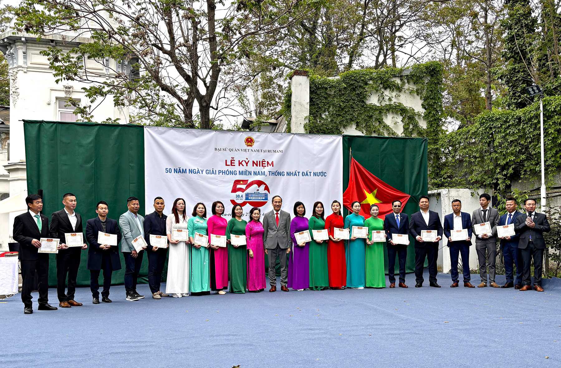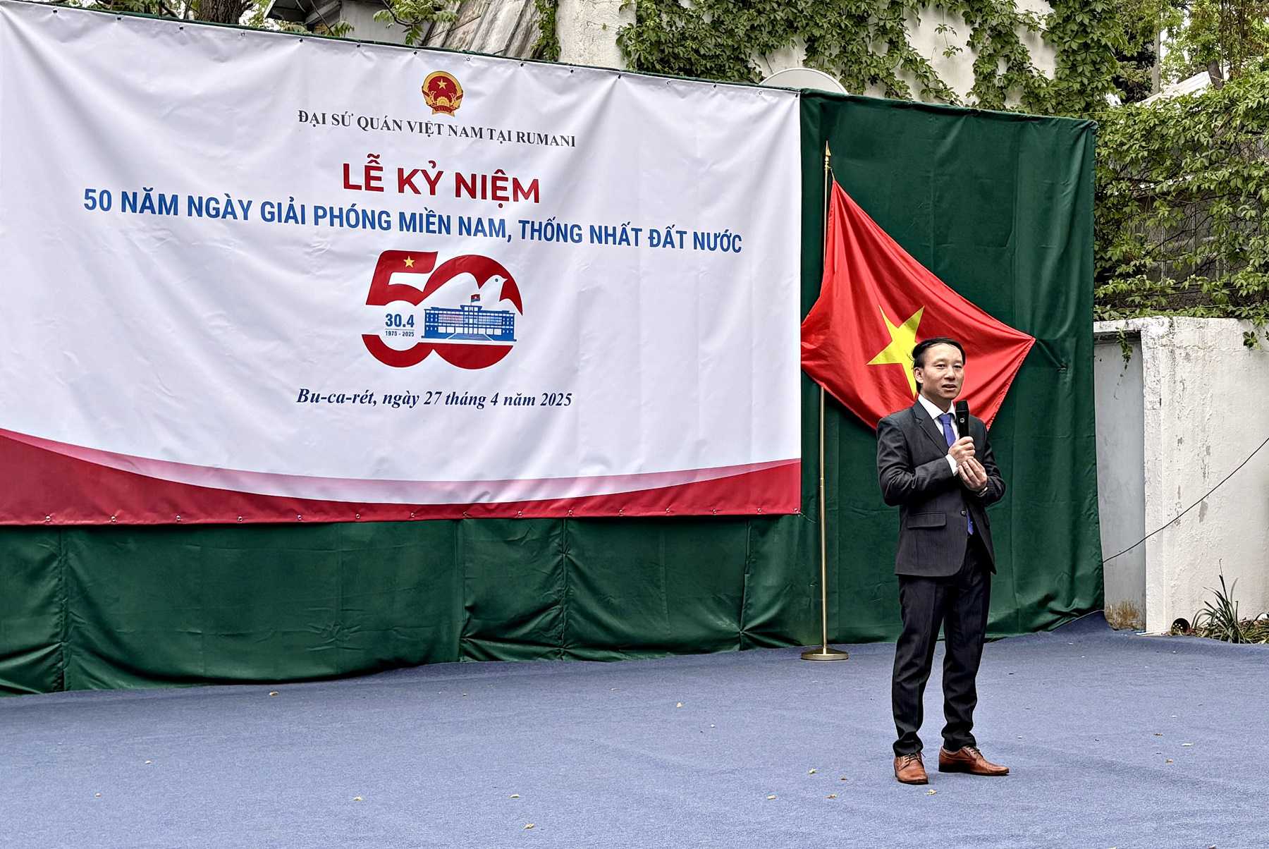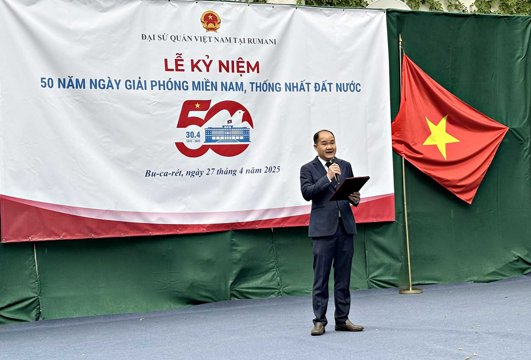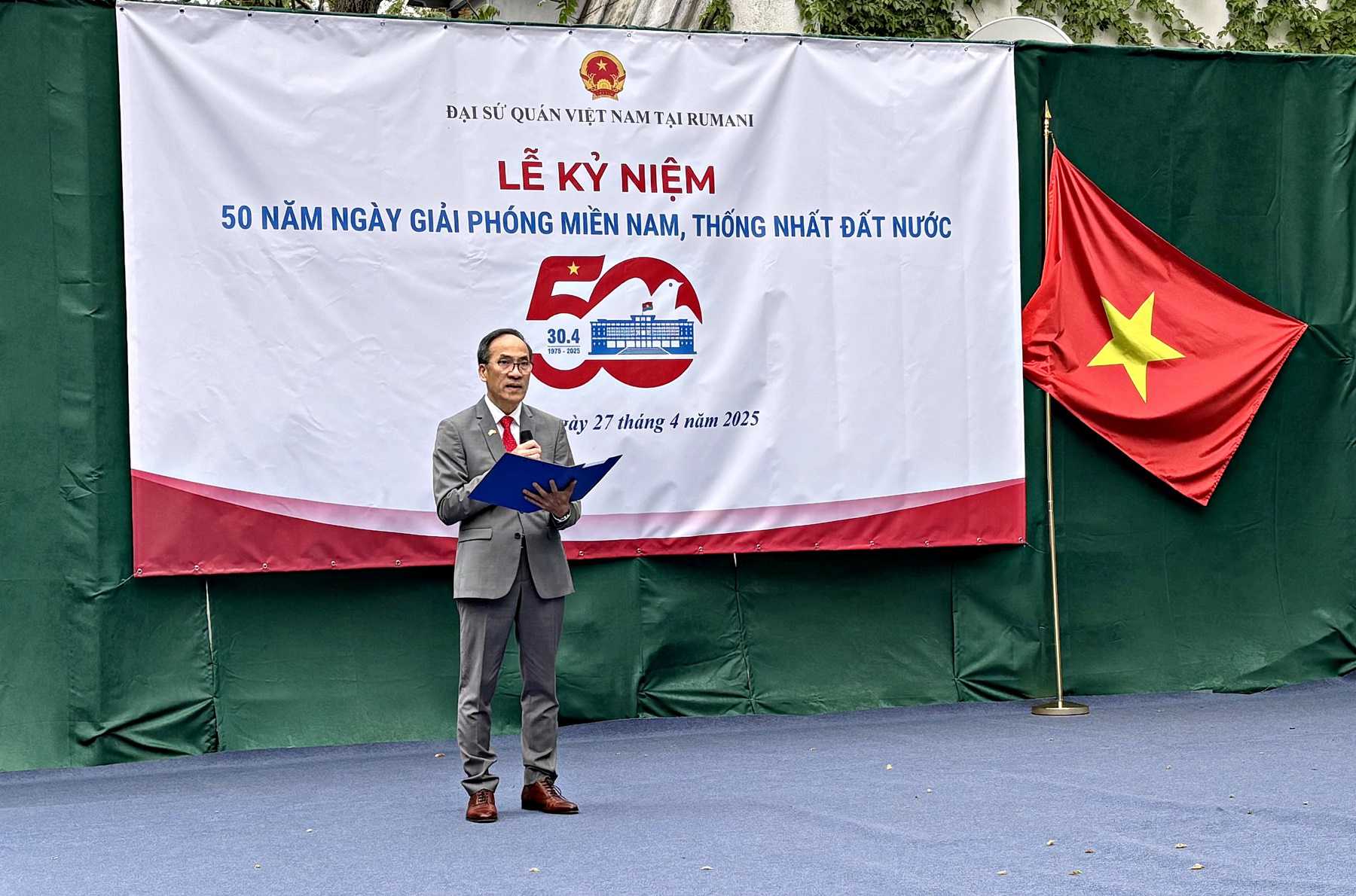 Hoà chung không khí hân hoan của cả nước, ngày 27/4/2025, Đại sứ quán Việt Nam tại Romania đã phối hợp với các hội đoàn người Việt Nam tại Romania tổ chức Lễ kỷ niệm 50 năm Ngày Giải phóng miền Nam, thống nhất đất nước (30/4/1975-30/4/2025) tại trụ sở Đại sứ quán.