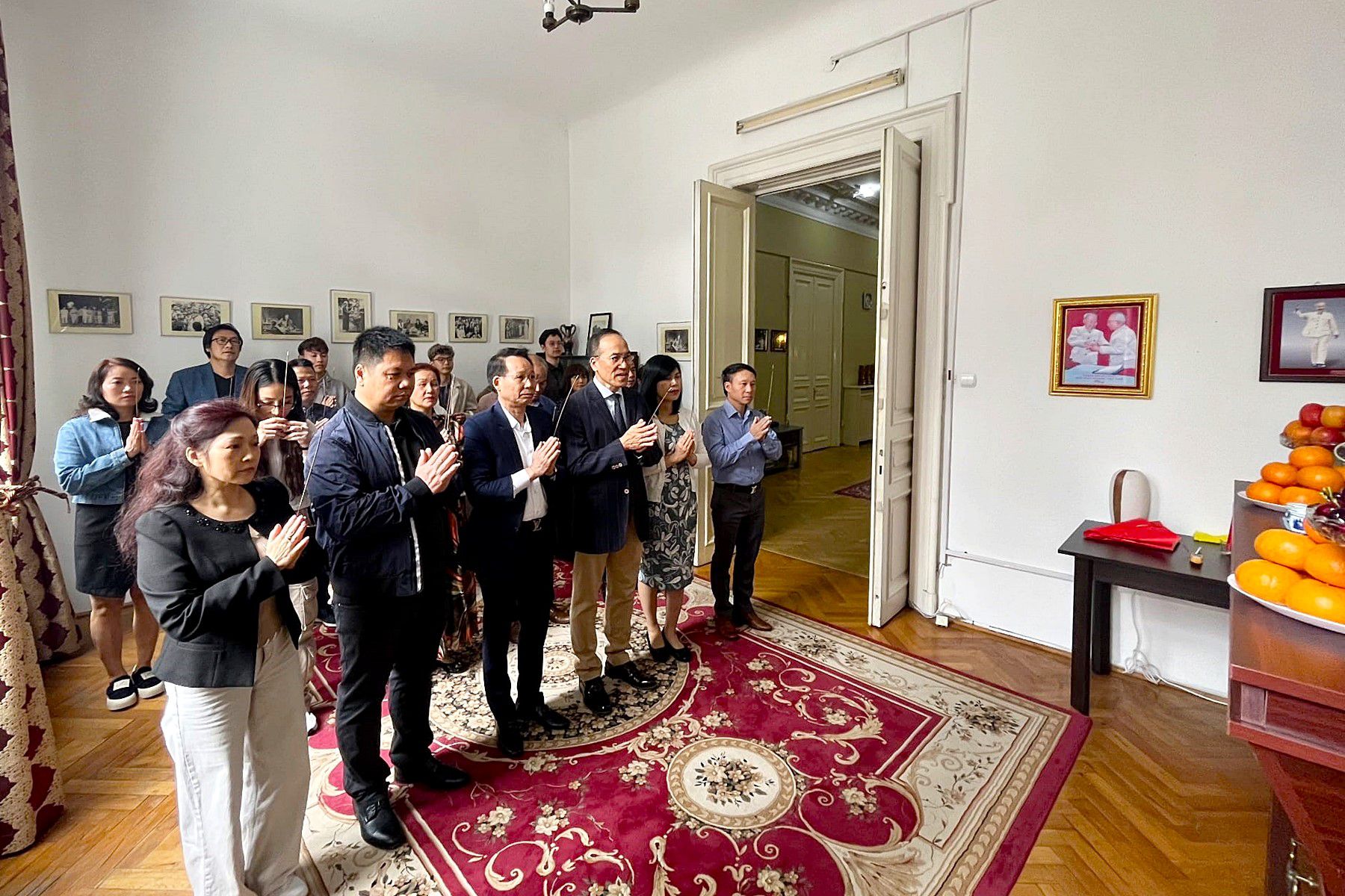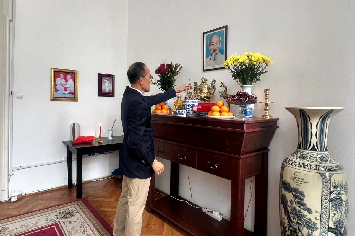 Ảnh: Đại sứ Đỗ Đức Thành thắp hương bàn thờ Bác
