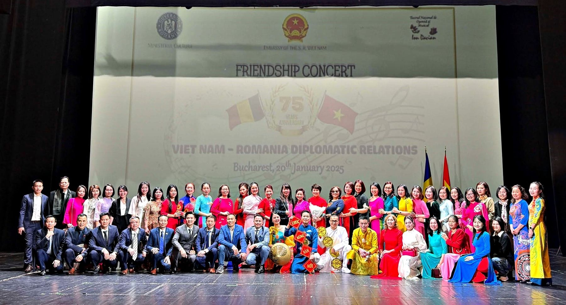Đại sứ quán Việt Nam tại Romania đã phối hợp với Bộ Văn hóa Romania long trọng tổ chức Ngày Văn hóa Việt Nam và Đêm nhạc Hữu nghị kỷ niệm 75 năm ngày thiết lập quan hệ ngoại giao giữa Việt Nam và Romania (3/2/1950-3/2/2025) tại Nhà hát Ion Dacia, thủ đô Bucharest.