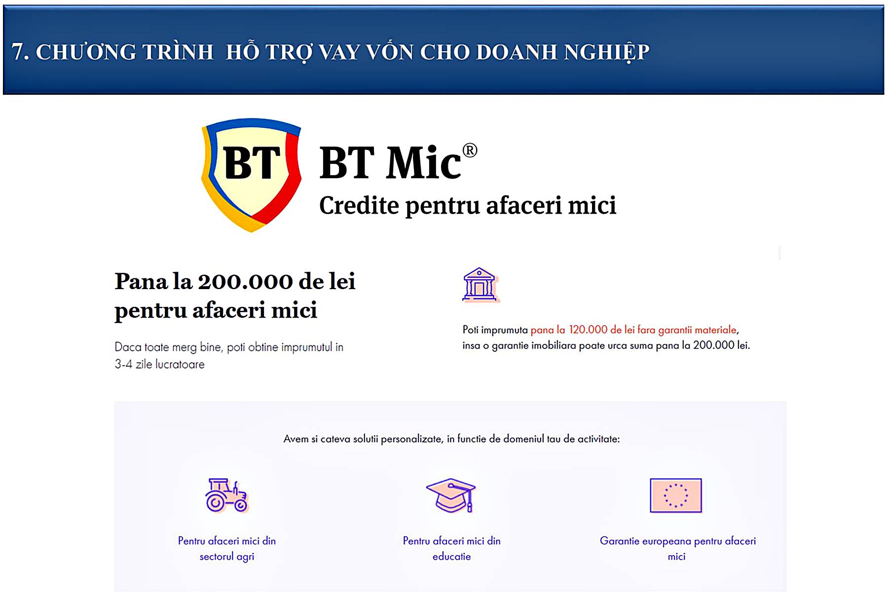 7. CHƯƠNG TRÌNH HỖ TRỢ VAY VỐN CHO DOANH NGHIỆP