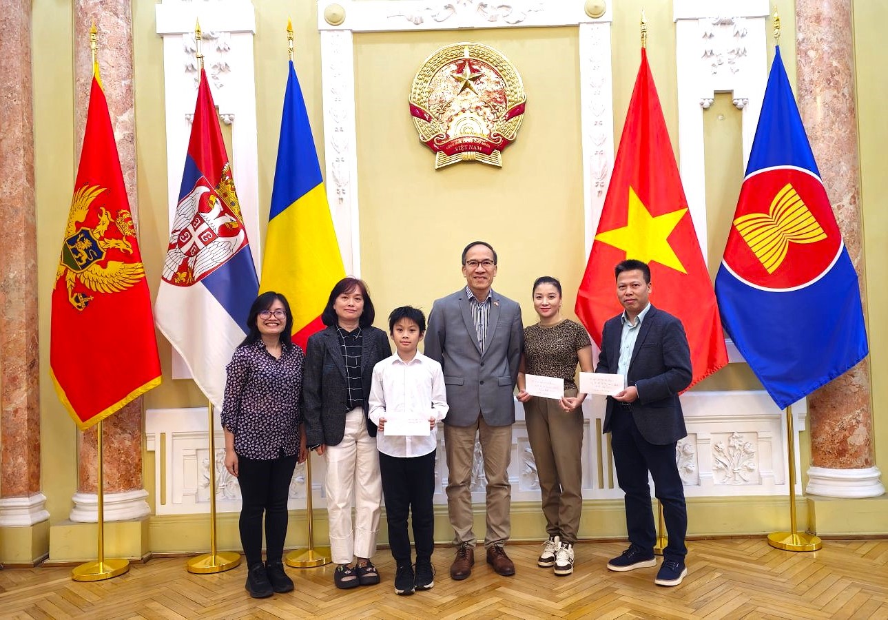 Ngày 10/10/2025, tại trụ sở Đại sứ quán Việt Nam tại Romania, đại diện Cộng đồng người Việt Nam tại Romania đã tới Đại sứ quán thông báo về kết quả quyên góp ủng hộ đồng bào các tỉnh, thành phố bị thiệt hại nặng nề do bão số 10 và mưa lũ gây ra.