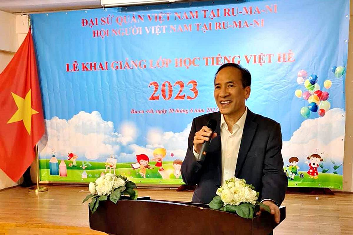 Trong buổi Lễ khai giảng, Đại sứ Đỗ Đức Thành nhấn mạnh việc gìn giữ và phát triển tiếng Việt trong cộng đồng người Việt tại Romania và các thế hệ con cháu là một ưu tiên của Đại sứ quán.