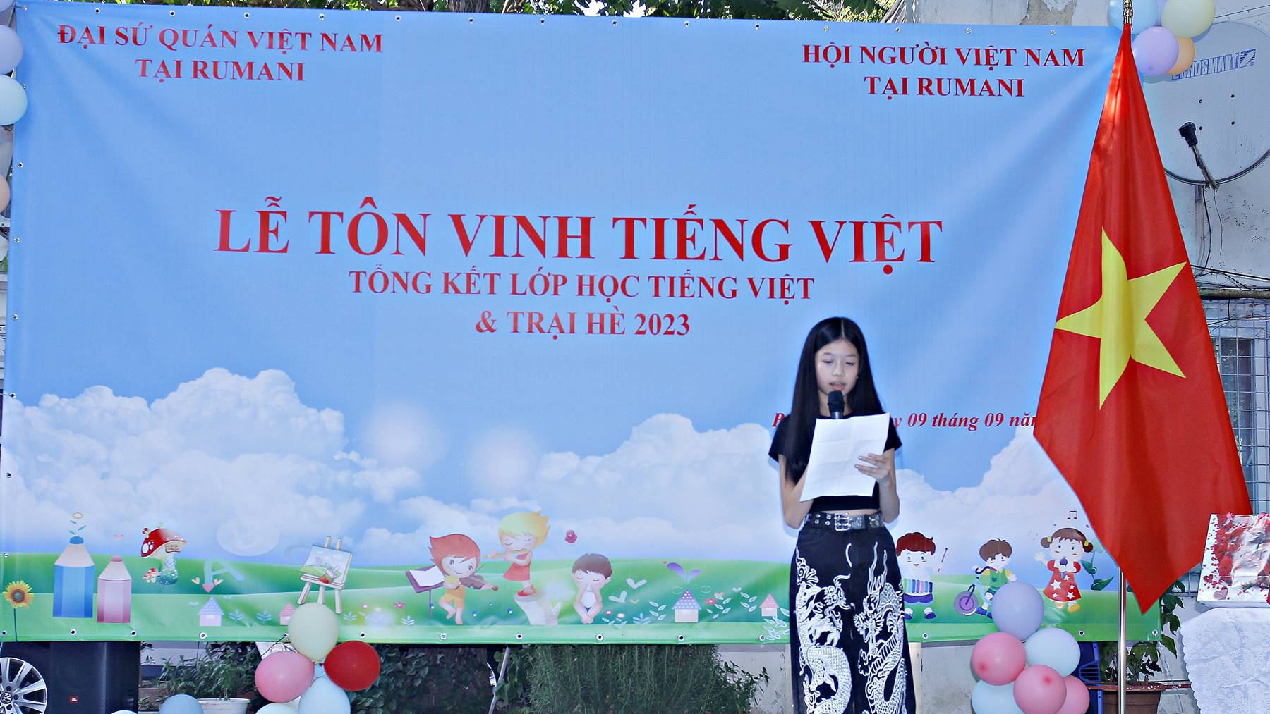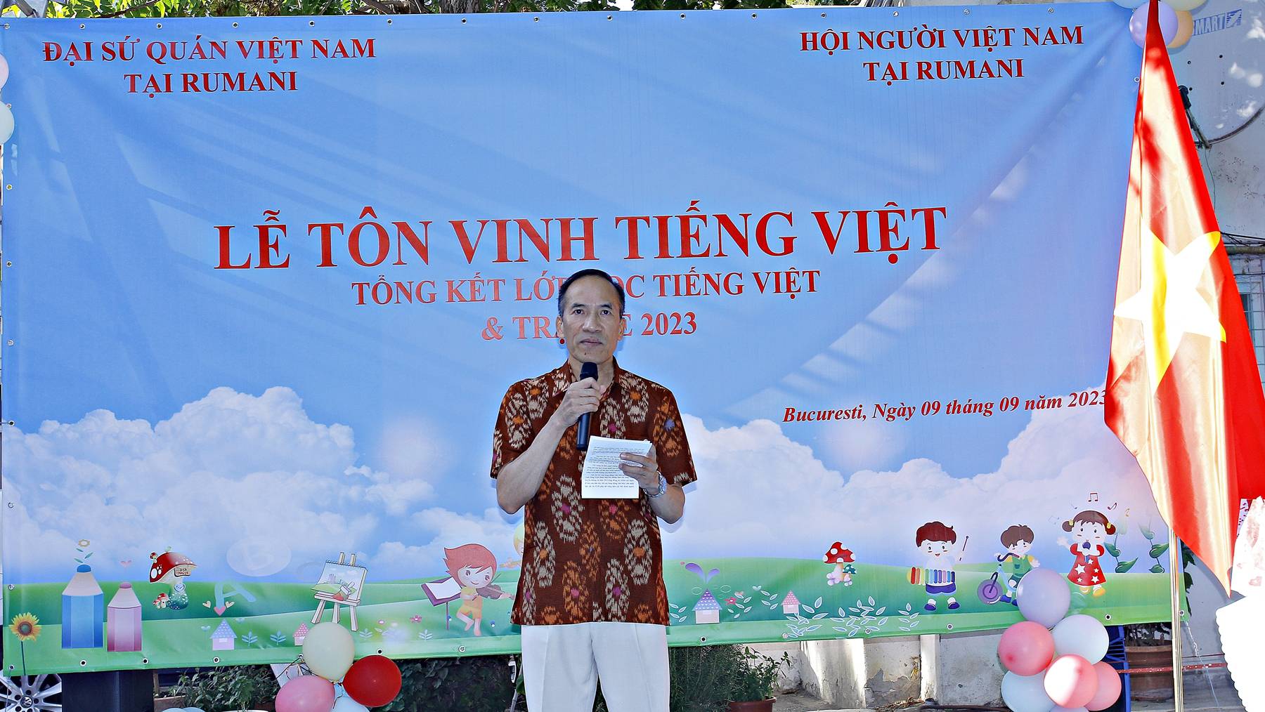 Phát biểu tại buổi Lễ, Đại sứ Đỗ Đức Thành khen ngợi động viên các em học sinh, tự hào chia sẻ Ngày Tôn vinh Tiếng Việt trong cộng đồng người Việt Nam ở nước ngoài đang từng bước trở thành một cột mốc quan trọng trong đời sống của bà con cộng đồng, đặc biệt ghi dấu ấn với trẻ em Việt Nam ở Romania ngày càng yêu thích tiếng Việt, qua đó giúp duy trì tiếng Việt, khẳng định đây là biện pháp hữu hiệu nhất giữ gìn truyền thống, bản sắc văn hoá dân tộc Việt Nam, xây dựng tình yêu, niềm tự hào về quê hương đất nước.