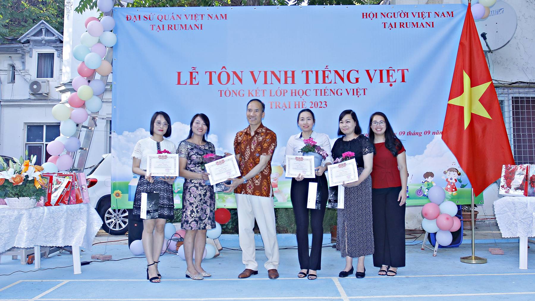 Bày tỏ trân trọng cảm ơn các thầy cô giáo đã tâm huyết, tự nguyện vì công việc dạy tiếng Việt cho các cháu là con em của bà con trong cộng đồng, luôn đóng vai trò nòng cốt trong việc giữ gìn phát huy tiếng Việt trong cộng đồng người Việt tại Romania, Đại sứ Đỗ Đức Thành khẳng định Đại sứ quán Việt Nam tại Romania sẽ luôn đồng hành, ủng hộ và kêu gọi các hội đoàn người Việt chung tay góp sức cho sự phát triển, nuôi dưỡng tình yêu tiếng Việt trong cộng đồng.