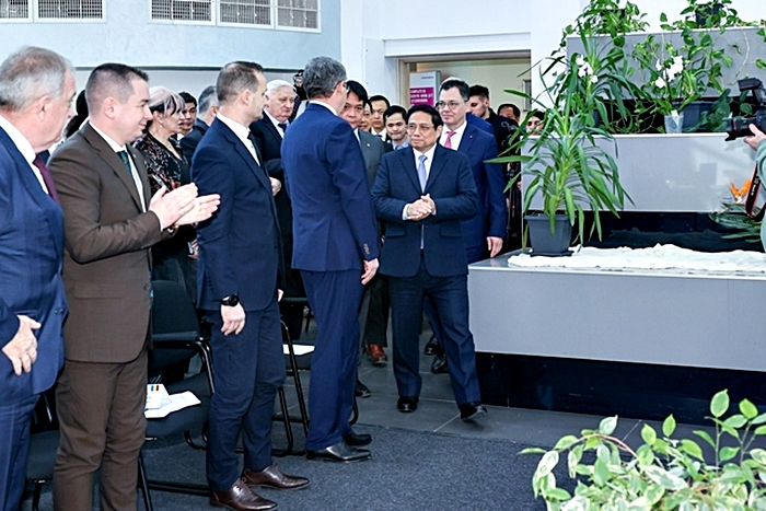 Lãnh đạo Phòng Thương mại và Công nghiệp Prahova đón Thủ tướng Chính phủ Phạm Minh Chính tới thăm – Ảnh: VGP/Nhật Bắc
