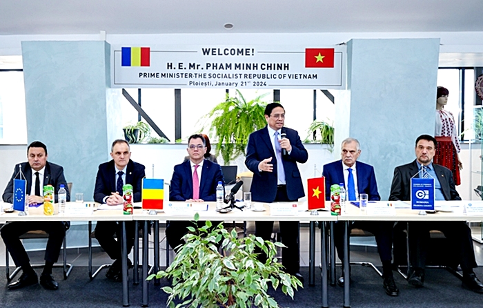 Thủ tướng cho biết phía Việt Nam sẵn sàng đẩy mạnh hợp tác với Romania nói chung và tỉnh Prahova nói riêng, làm mới những động lực hợp tác cũ và thúc đẩy những động lực hợp tác mới, nhất là trong những lĩnh vực mới nổi, là xu thế lớn của thế giới và hai bên đều có mục tiêu phát triển như kinh tế số, kinh tế xanh, kinh tế tuần hoàn, kinh tế chia sẻ.