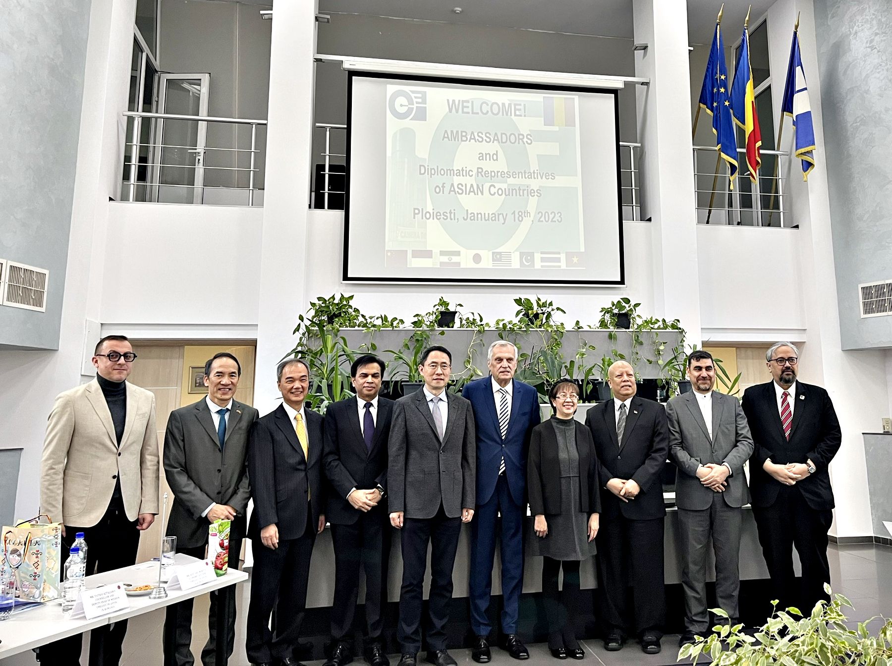 Ngày 18/01/2023, trong khuôn khổ chương trình làm việc của Đại sứ các nước châu Á tại thành phố Ploiesti, thủ phủ tỉnh Prahova, Đại sứ Đỗ Đức Thành đã tham dự hội thảo tại Phòng Thương mại và Công nghiệp Prahova nhằm thúc đẩy hợp tác giữa tỉnh với các nước châu Á. Trong khuôn khổ hội thảo, các Đại sứ 8 nước châu Á cũng làm việc với Tỉnh trưởng tỉnh Prahova, ông Virgiliu-Daniel Nanu, Thị trưởng Ploesti, ông Andrei Liviu Volosevici, thăm Trường Đại học Dầu khí Ploiesti, thăm Bảo tàng Đồng hồ nổi tiếng thế giới tại đây.