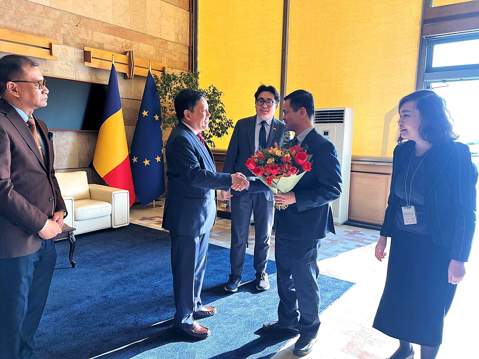 Tại sân bay quốc tế Otopeni, Đại sứ được Lễ tân Nhà nước Romania, các Đại sứ các nước ASEAN (Indonesia, Malaysia, Philippines và Thái Lan) và tập thể cán bộ, nhân viên Đại sứ quán Việt Nam tại Romania đón tiếp chu đáo.