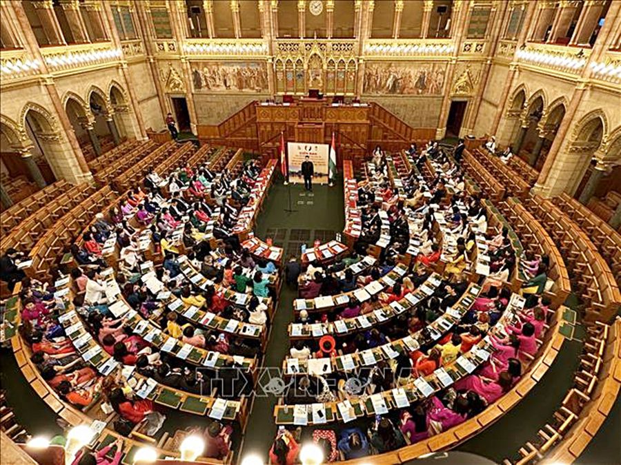 Diễn đàn được tổ chức trong phòng họp Thượng viện của Tòa nhà Quốc hội, cơ quan lập pháp tối cao của Hungary. (Nguồn: TTXVN)