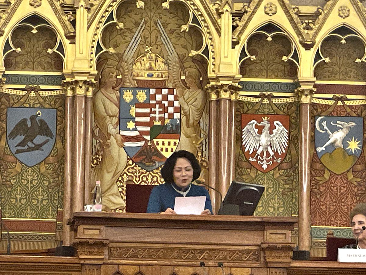 Phát biểu tại Diễn đàn, Phó Chủ tịch thường trực Quốc hội Hungary Mátrai Márta chia sẻ tình cảm đặc biệt sâu sắc dành cho Việt Nam, cũng như đánh giá cao mối quan hệ hữu nghị lâu đời giữa hai nước. Bà Mátrai Márta khẳng định sự ủng hộ đối với những nội dung mà diễn đàn muốn trao đổi, đồng thời cho rằng, phụ nữ là trụ cột căn bản của tất cả các xã hội, phải đảm đương tốt nhiệm vụ cả trong công việc và trong gia đình. Họ không chỉ phải làm việc gấp đôi để được công nhận và bình đẳng trong công việc, mà họ còn gánh trách nhiệm chủ yếu trong việc nuôi dạy con cái và công việc gia đình, điều này càng trở nên khó khăn hơn bởi những thách thức mà cả xã hội phải đối mặt.