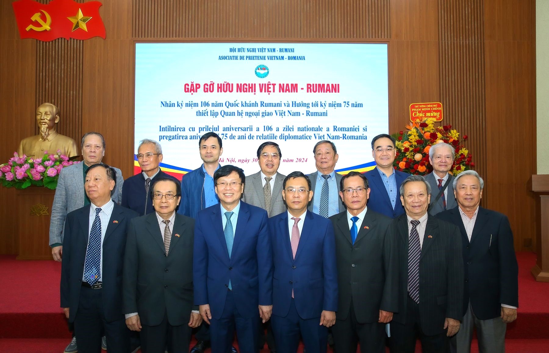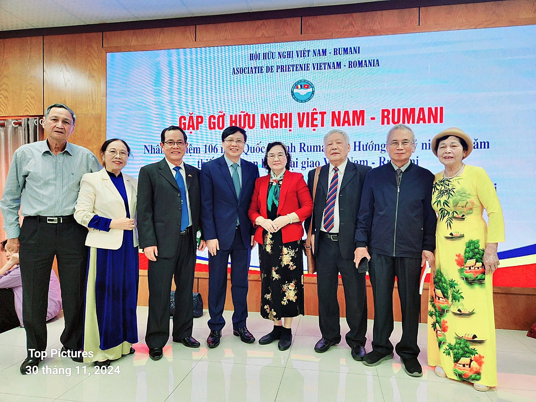 Ngày 30/11, Hội Hữu nghị Việt Nam-Romania tổ chức Gặp gỡ hữu nghị nhân kỷ niệm 106 năm Quốc khánh Romania (1/12/1918-1/12/2024) và hướng đến kỷ niệm 75 năm Ngày thiết lập quan hệ ngoại giao Việt Nam-Romania (3/2/1950-3/2/2025).