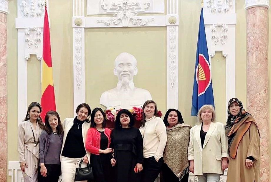 Ảnh: Phu nhân Đại sứ các nước chụp ảnh lưu niệm.