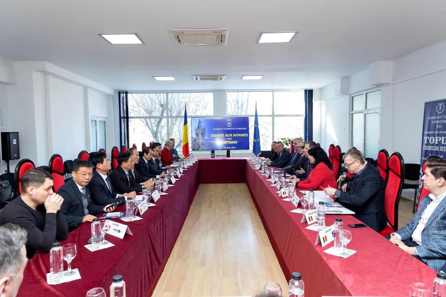 Trong thời gian ở thăm và làm việc tại thành phố Iasi, đoàn công tác của thành phố cũng đã tham dự Bàn tròn trao đổi thông tin về hợp tác và đầu tư Rumani – Việt Nam do Phòng Thương mại và Công nghiệp Iasi cùng Tòa thị chính thành phố Iasi tổ chức. Đại sứ Đỗ Đức Thành cùng các thành viên đoàn công tác đã trao đổi và cung cấp thông tin về cơ hội hợp tác với Việt Nam cũng như tiềm năng, thế mạnh của Huế trong các lĩnh vực như dệt may, chế biến thực phẩm, nuôi trồng, khai thác và chế biến thủy hải sản hướng đến xuất khẩu, du lịch và dịch vụ… Phía bạn cũng bày tỏ sự quan tâm đặc biệt về khả năng hợp tác và đầu tư trong các lĩnh vực như sản xuất các linh kiện và thiết bị bán dẫn, công nghệ thông tin, công nghiệp sáng tạo, nông nghiệp, dịch vụ, cung cấp lao động, dược phẩm và thực phẩm chức năng…