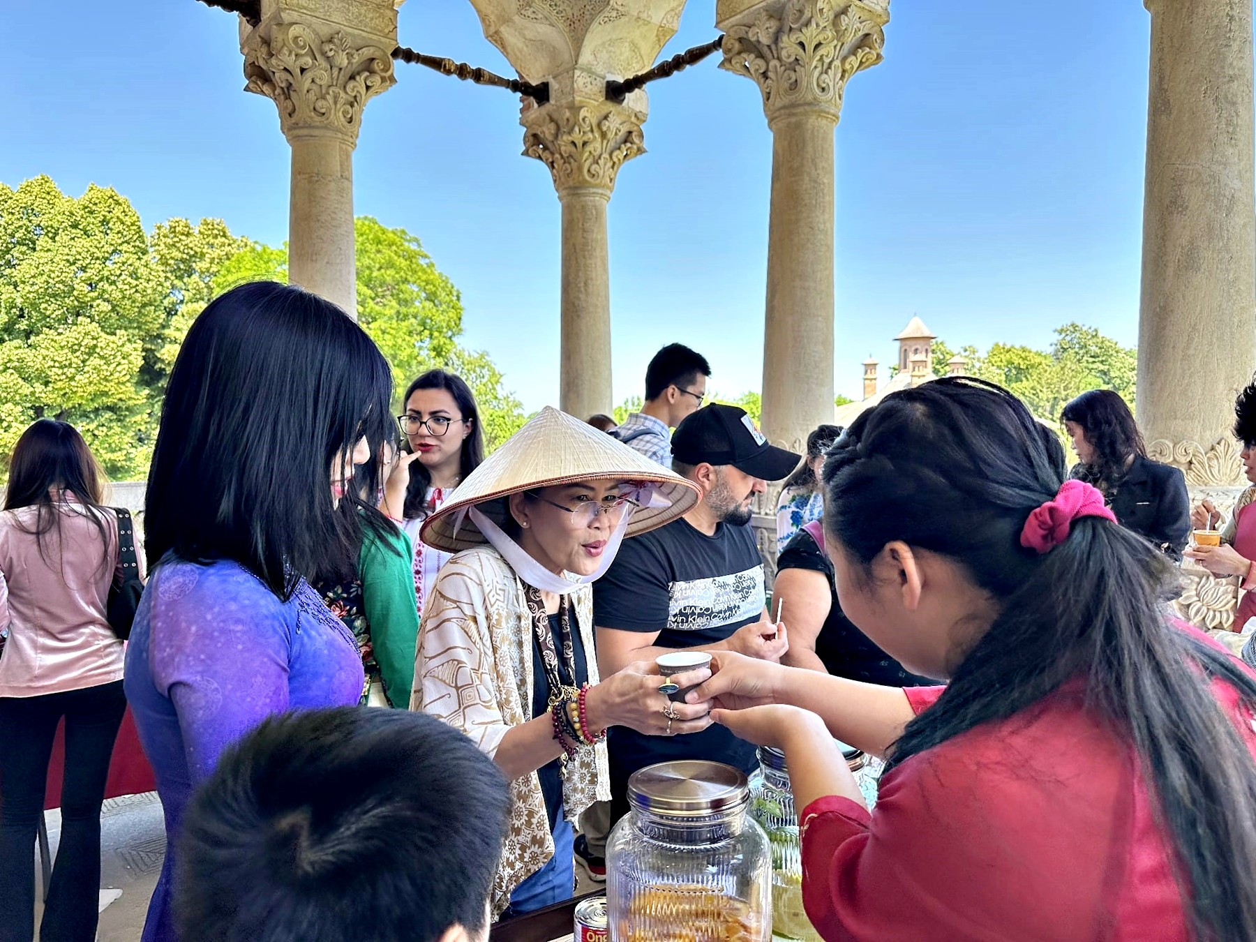 Ảnh: Khách tham quan thích thú tìm hiểu về cà phê Việt Nam