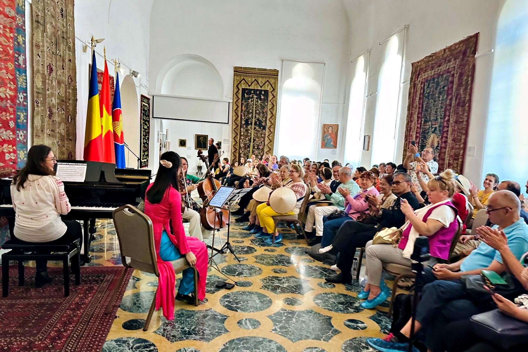 Kết thúc chương trình, khách mời và công chúng được thưởng thức các bài hát Rumani và Việt Nam như Bèo dạt mây trôi, Trống cơm, Việt Nam ơi… qua phần biểu diễn nhạc cụ của các bạn sinh viên Việt Nam và Rumani đang theo học tại Đại học Âm nhạc Bucaret, tham quan triển lãm tranh của họa sỹ nổi tiếng Văn Dương Thành.