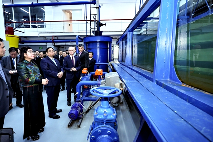 Thủ tướng Phạm Minh Chính tham quan phòng thí nghiệm thủy lực – Ảnh: VGP/Nhật Bắc