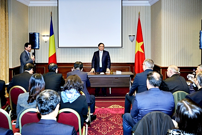 Sau khi lãnh đạo các bộ, ngành giới thiệu khái quát về tình hình Việt Nam thời gian qua, phát biểu tại cuộc gặp, Thủ tướng Phạm Minh Chính vui mừng và xúc động trong chuyến thăm đất nước Rumani tươi đẹp, nơi có nhiều kỷ niệm gắn bó sâu sắc, được gặp đại diện các hội đoàn, bạn bè hữu nghị Romania, những người bạn thân thiết đã bằng lòng nhiệt thành và tình cảm hữu nghị trong sáng, không ngừng vun đắp cho tình đoàn kết, hữu nghị giữa hai nước, sự hiểu biết, chia sẻ, gắn bó giữa hai dân tộc.