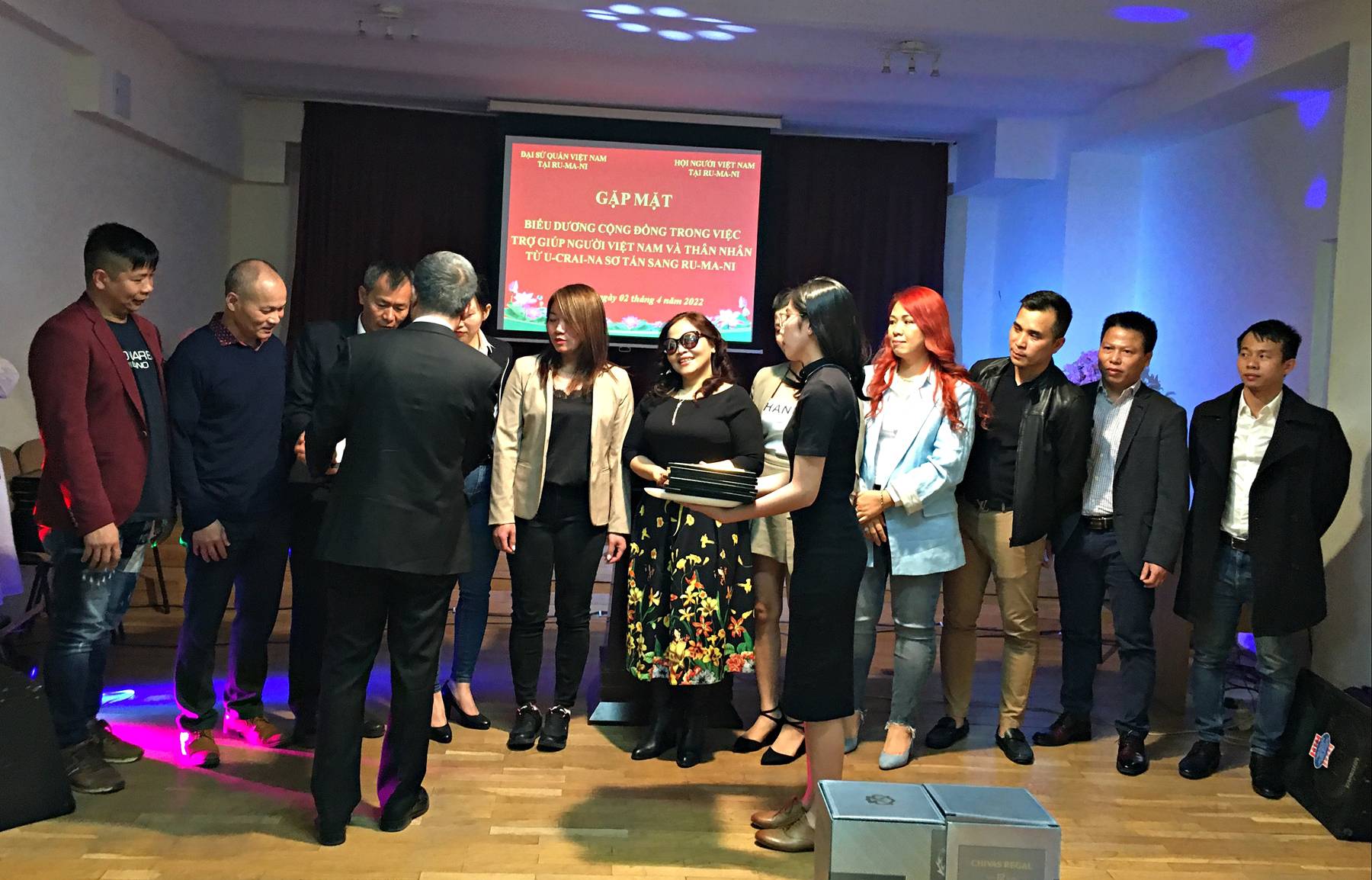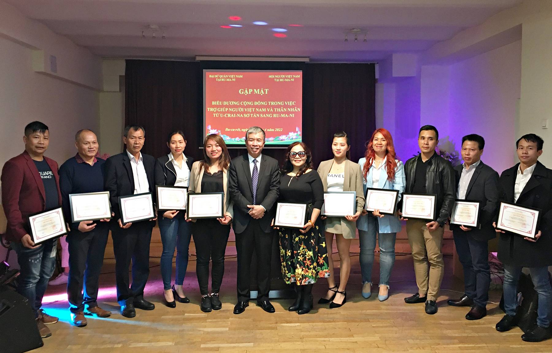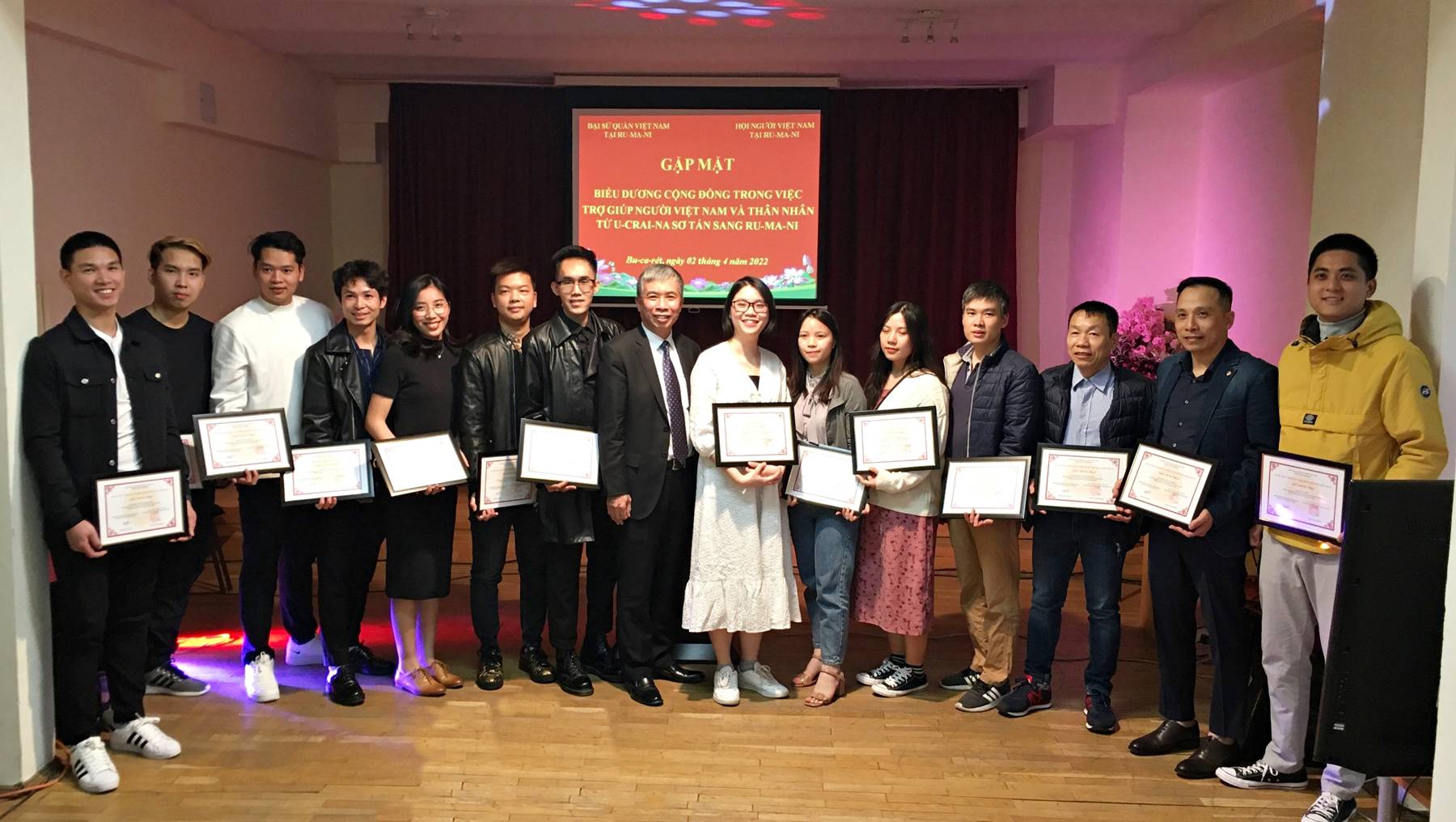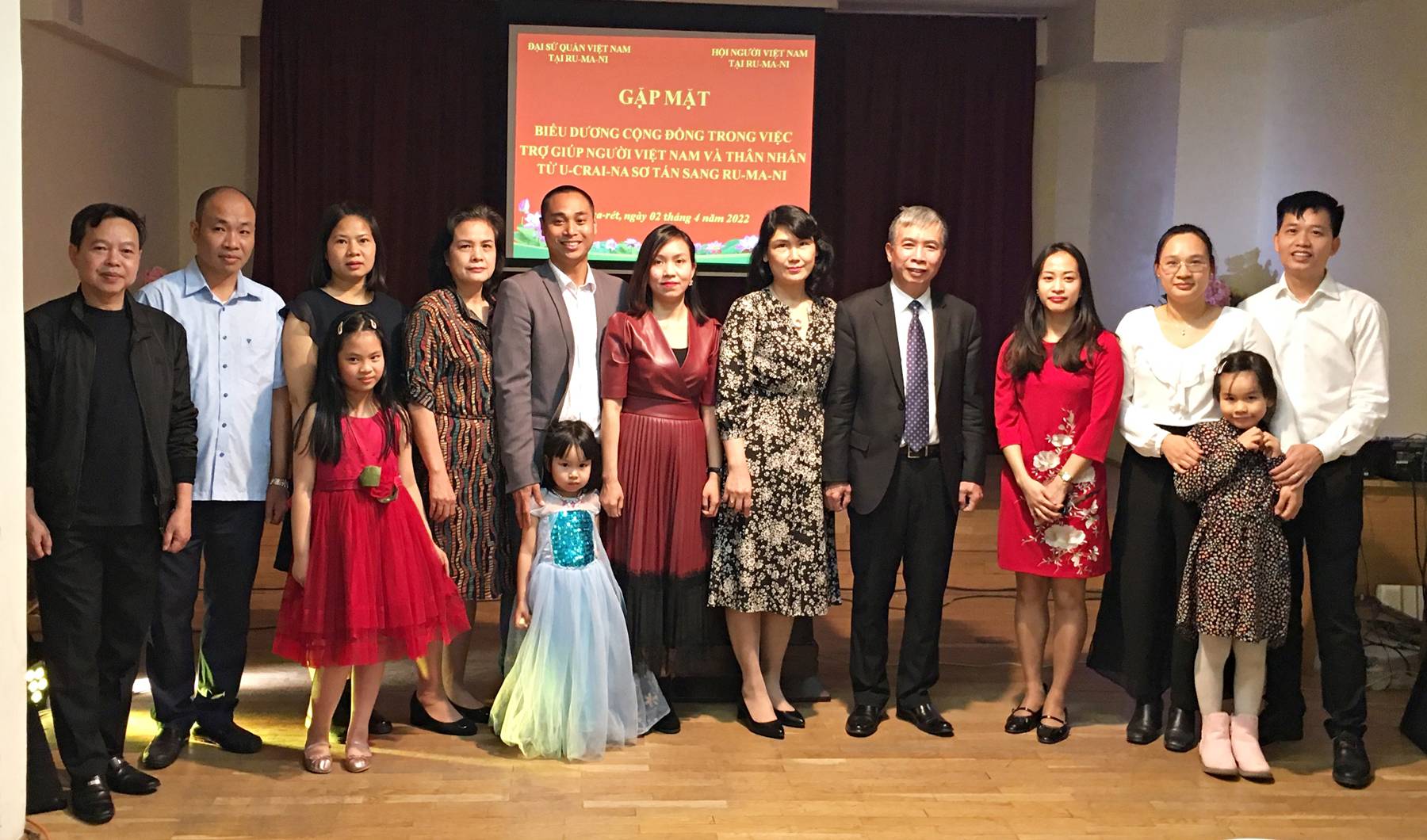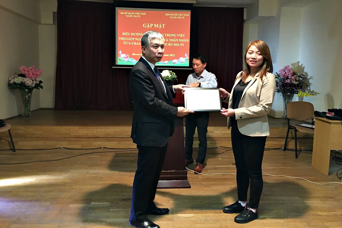 Ngày 02/04, tại thủ đô Bucharest-Romania, Đại sứ quán Việt Nam và Hội người Việt Nam tại Romania đã tổ chức buổi gặp mặt biểu dương Cộng đồng về những đóng góp tích cực trong việc giúp đỡ, hỗ trợ người Việt Nam và thân nhân từ Ukraine sang Romania.