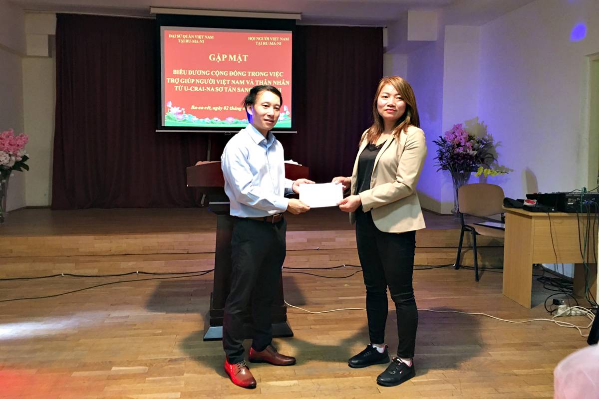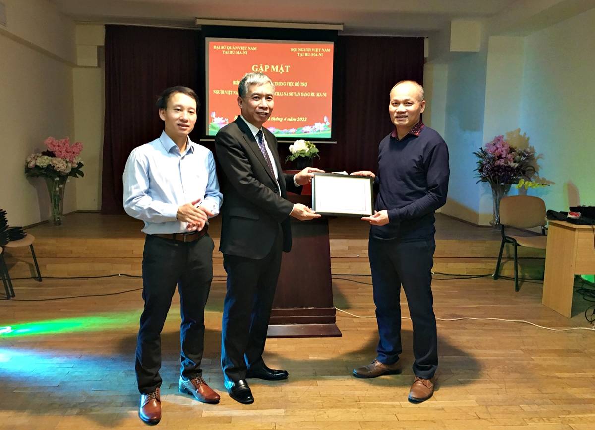 Thay mặt Đại sứ quán, Cộng đồng người Việt Nam tại Romania, Đại sứ trân trọng gửi lời cảm ơn sâu sắc đối với sự chia sẻ, hỗ trợ cả về tinh thần và tài chính của Liên hiệp hội doanh nghiệp Việt Nam tại Châu Âu, Hội người Việt Nam tại Séc trong công tác giúp đỡ, hỗ trợ người Việt từ Ukraine tại Romania.
