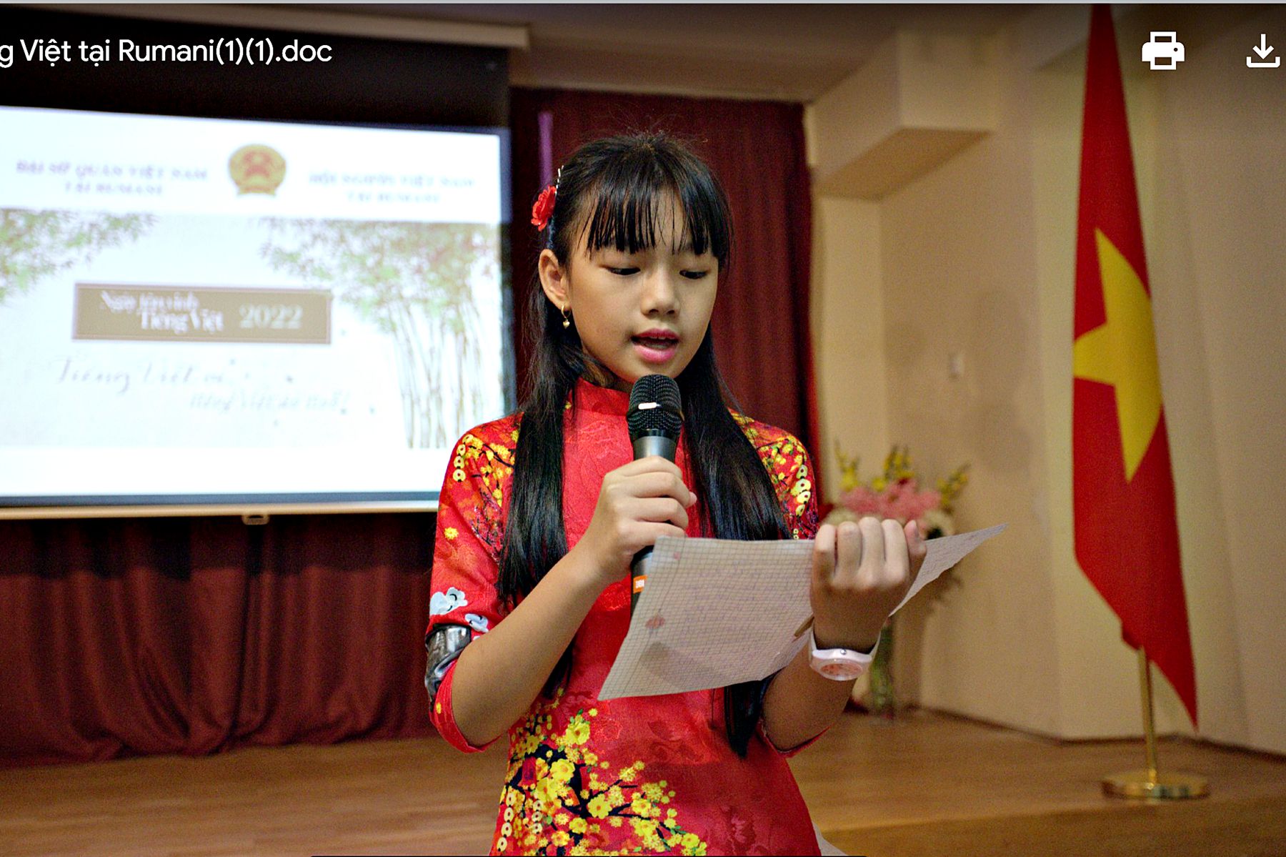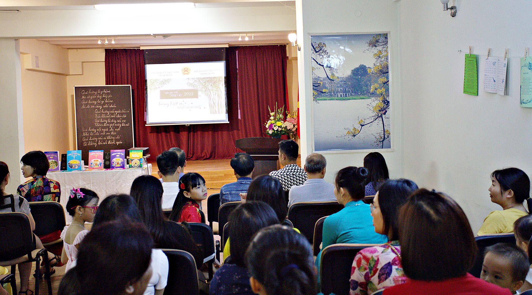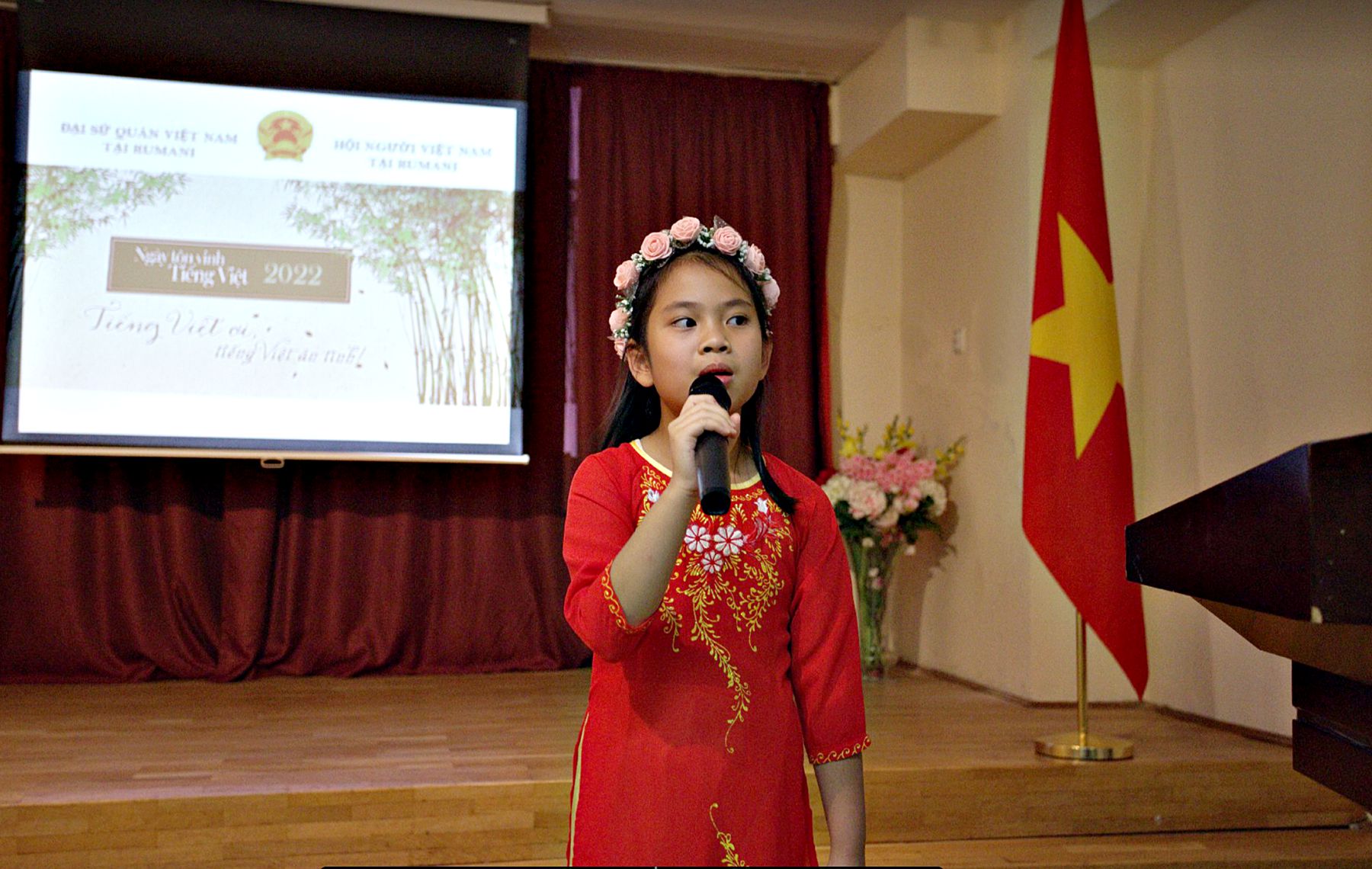 Sự kiện bắt đầu bằng Triển lãm ảnh, tư liệu về công tác dạy và học tiếng Việt tại Rumani với nhiều vần thơ, nét chữ của chính các cháu học sinh thực hiện, còn lưu giữ lại. Sau Triển lãm là Lễ phát động “Ngày Tôn vinh tiếng Việt trong Cộng đồng người Việt Nam tại Rumani năm 2022”.