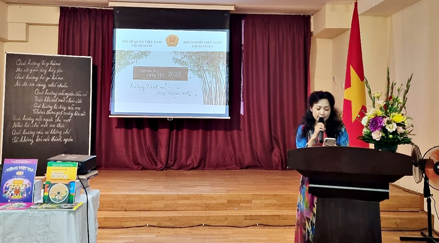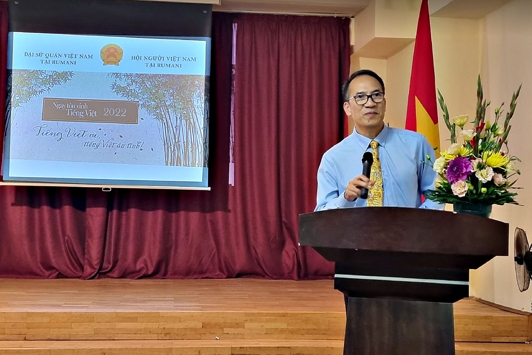 Hưởng ứng Ngày Tôn vinh tiếng Việt trong cộng đồng người Việt Nam ở nước ngoài, chiều ngày 10/09/2022, Đại sứ quán Việt Nam tại Rumani và Hội Người Việt Nam tại Rumani đã phối hợp tổ chức “Ngày Tôn vinh tiếng Việt trong Cộng đồng người Việt Nam tại Rumani năm 2022”. Tham dự sự kiện có đông đảo lãnh đạo các hội, đoàn, bà con kiều bào người Việt sinh sống, lao động, học tập tại Rumani và cán bộ, nhân viên Cơ quan đại diện.