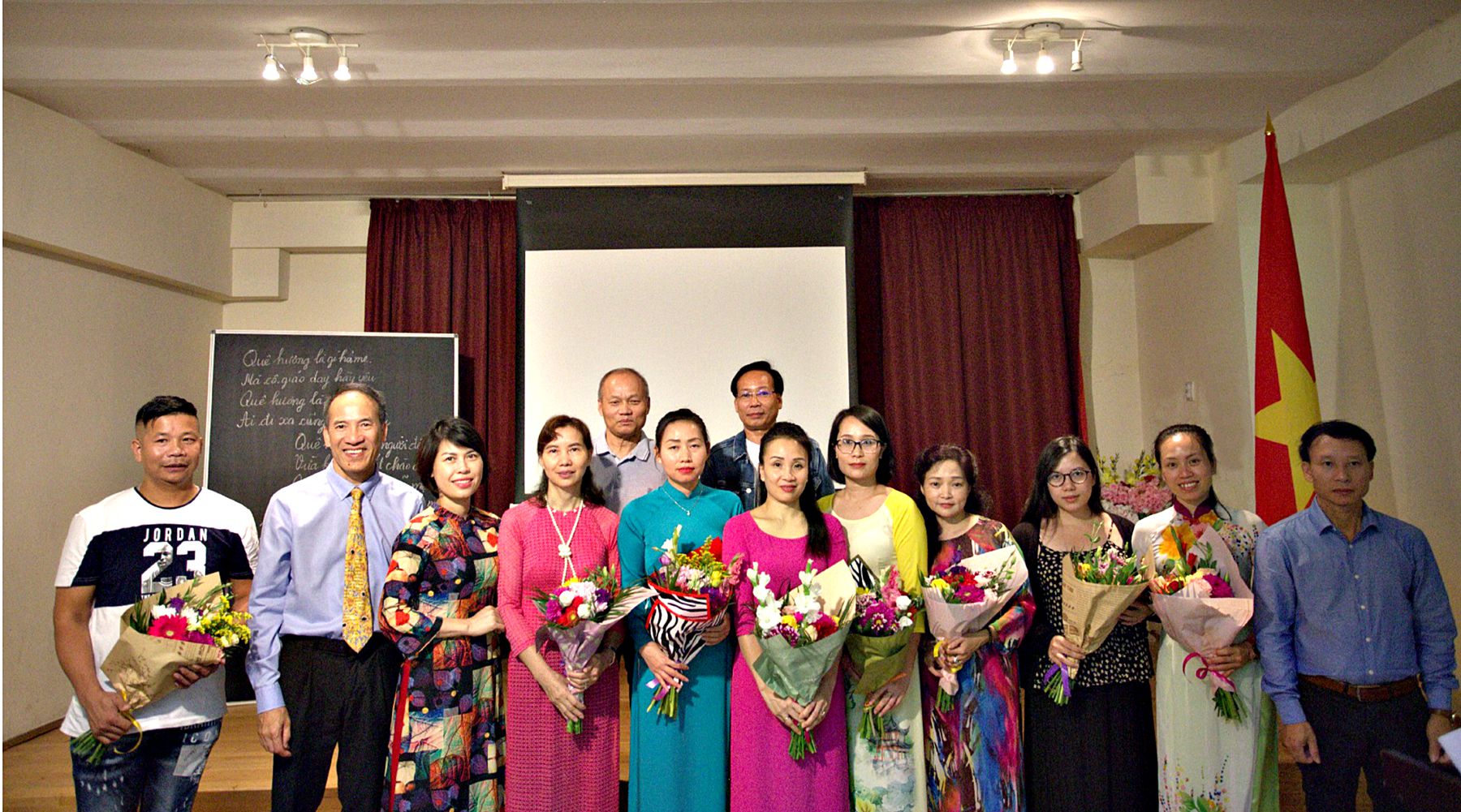 Đại sứ cũng biểu dương sự nhiệt tình, tận tâm của Hội người Việt, Câu lạc bộ Phụ nữ và đặc biệt là các giáo viên dạy tiếng Việt, linh hồn của các khóa học được tổ chức hàng năm tại Đại sứ quán.