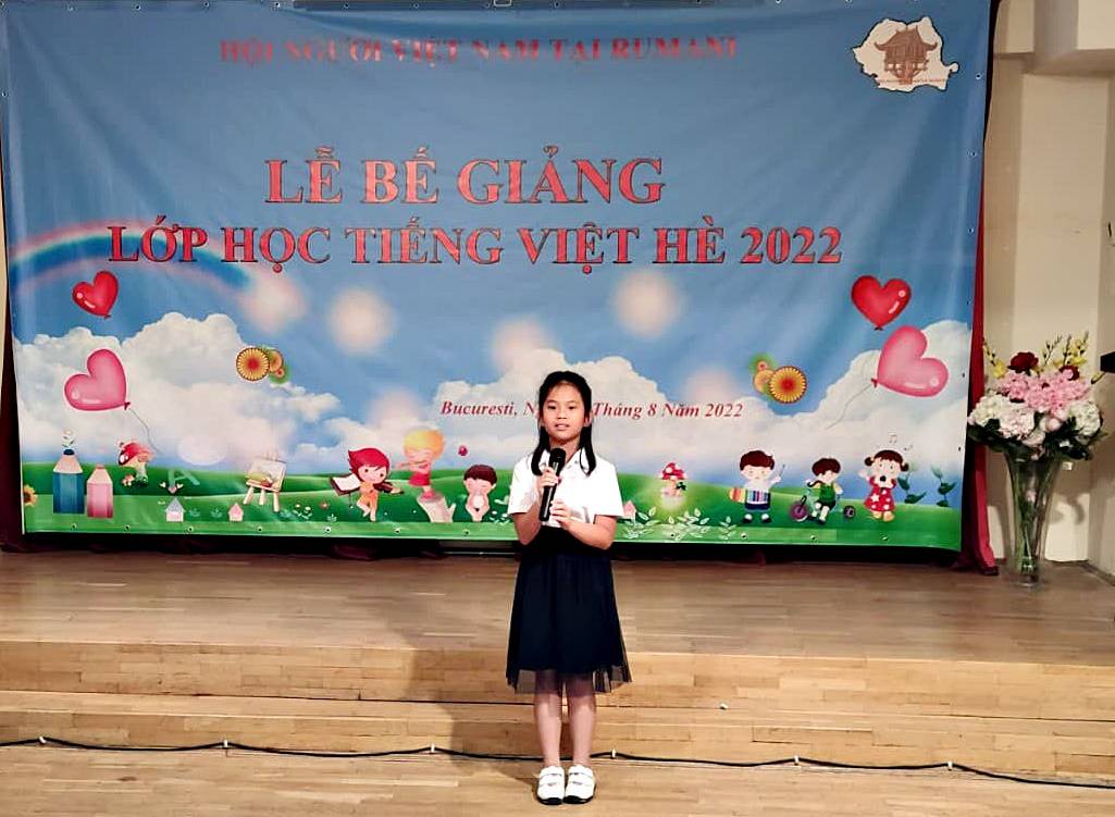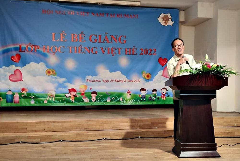 Tại buổi lễ, Đại sứ Đỗ Đức Thành đánh giá cao kết quả đạt được của Lớp học tiếng Việt, sự nỗ lực, cố gắng của BTC, giáo viên, cũng như của phụ huynh, các cháu học sinh. Đại sứ Đỗ Đức Thành nhấn mạnh việc gìn giữ và phát triển tiếng Việt trong cộng đồng người Việt tại Romania luôn được Đại sứ quán quan tâm, thúc đẩy, Đại sứ quán sẽ tiếp tục tạo điều kiện tốt nhất cho việc tổ chức các lớp học tiếng Việt. Đại sứ cũng nhắn nhủ các cháu duy trì, tiếp tục tự học tập, rèn luyện sau khóa học để có thể sử dụng tốt hơn tiếng mẹ đẻ, hiểu biết hơn về văn hóa Việt Nam, về cội nguồn dân tộc, đồng thời đề nghị các hội đoàn, các gia đình tiếp tục quan tâm giảng dạy, phát huy khả năng tiếng Việt của các cháu. Đại sứ đã trao tặng Giấy khen cho các giáo viên đã trực tiếp giảng dạy Lớp tiếng Việt hè 2022 nhằm ghi nhận những đóng góp quý báu của các thầy cô trong việc gìn giữ tiếng Việt.