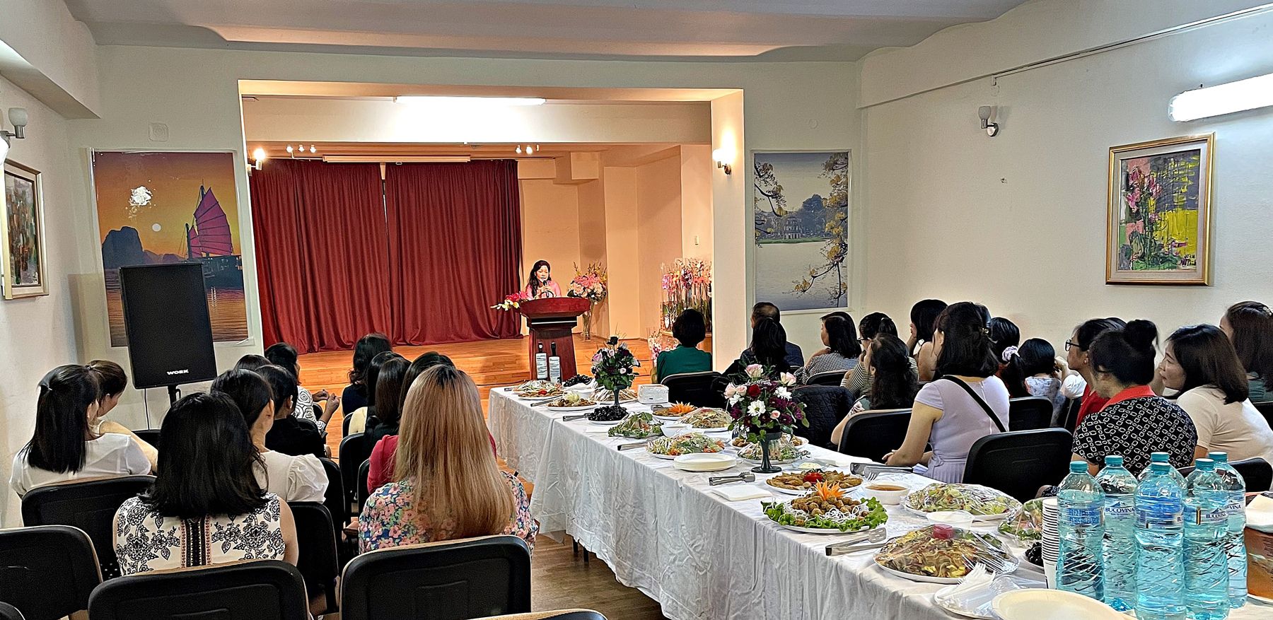 Sau một thời gian dịch bệnh, hôm nay, ngày 4/9, Câu lạc bộ (CLB) Phụ nữ Việt Nam tại Romania lại được sinh hoạt trong bầu không khí vui vẻ, hào hứng. Chị em đến từ sớm, tíu tít kê dọn bày biện các món ăn trông thật đẹp mắt.