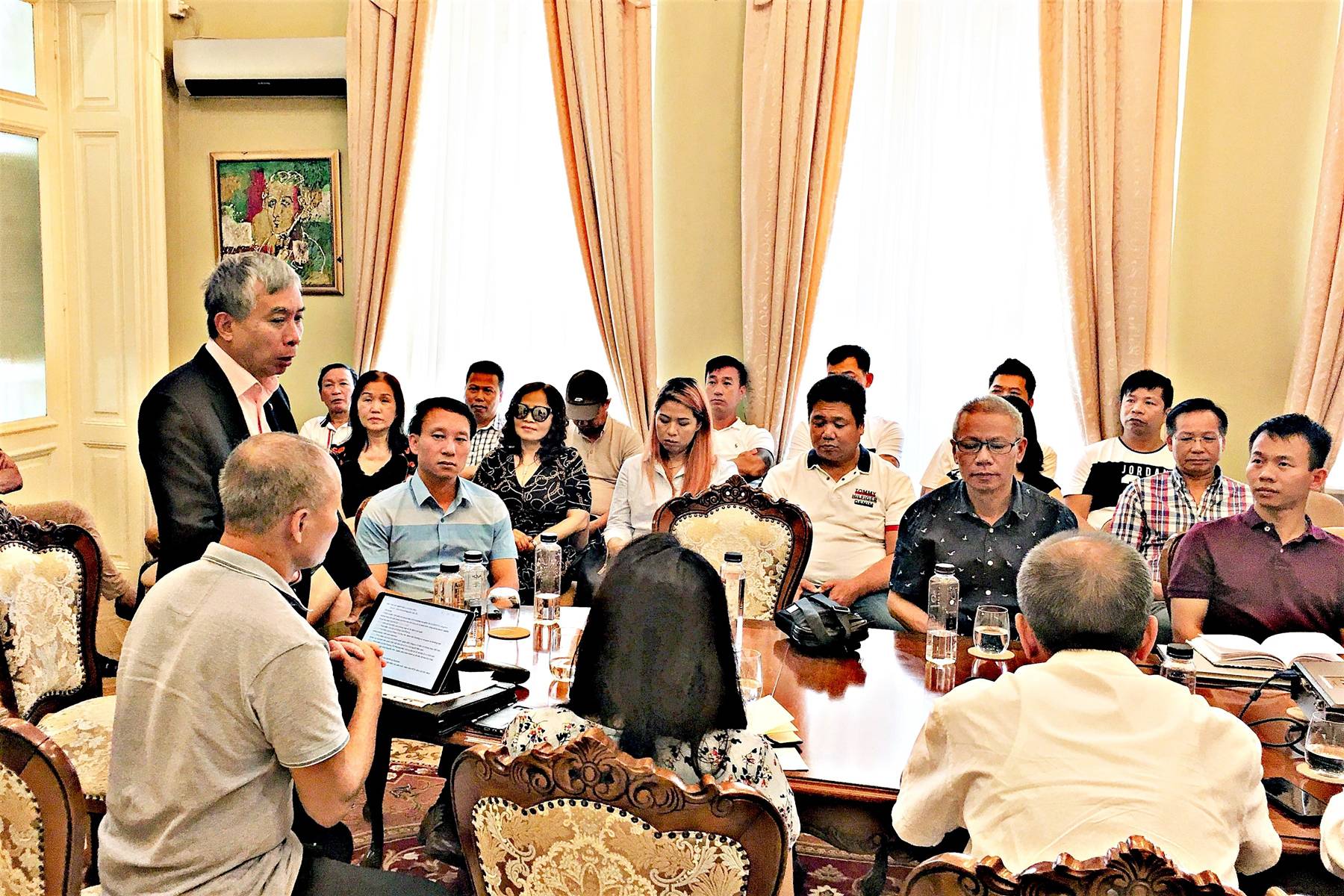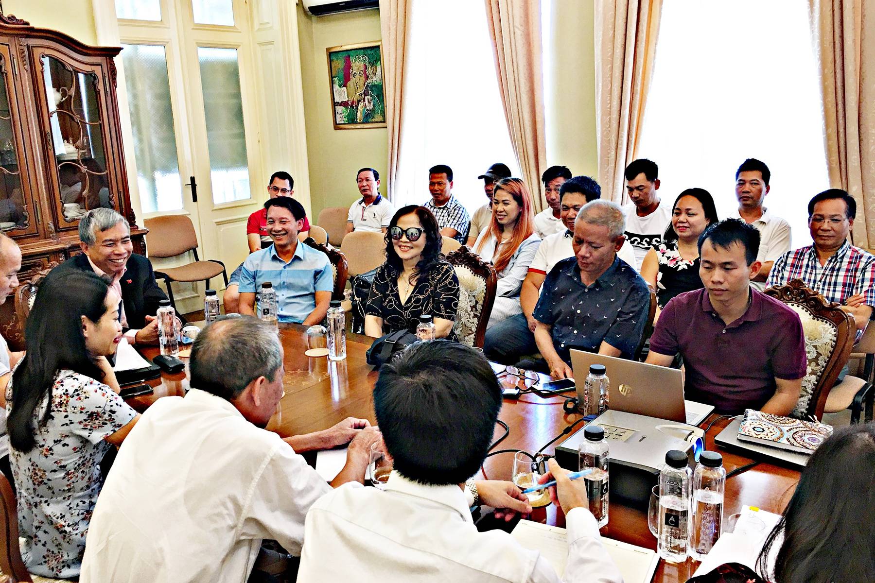 Tham dự buổi Tọa đàm gồm toàn thể hội viên Hội Doanh nghiệp, một số bà con người Việt. Phía Đại Sứ quán có Đại sứ Đặng Trần Phong, Tham tán Thương mại – chị Phạm Thị Thu Hà, thư ký Đại sứ – chị Hoàng Thị Phương Mai, phụ trách Lãnh sự về vấn đề bảo hộ công dân – anh Nguyễn Hữu Tuyến.